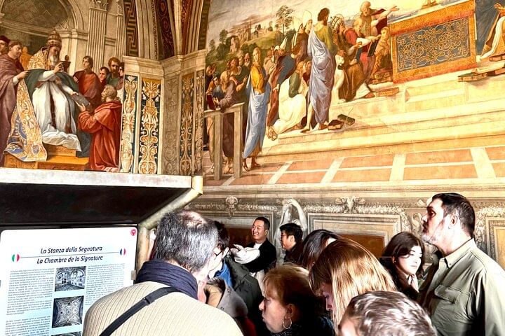 Explore the Vatican Museums and Sistine Chapel without waiting in line by using skip-the-line tickets. Experience a journey through the awe-inspiring museums, discovering a treasure trove of Roman statues, Renaissance paintings, and Italian artworks. Marvel at the Belvedere and Pinecone Courtyards, the Gallery of Maps, and the Pio Clementino Museum's Greek Cross Hall, Gallery of Statues, and Hall of the Muses. Admire the Raphael Rooms with their famous frescoes by Raphael, including "The School of Athens." Finally, witness the beauty of the Sistine Chapel, adorned with frescoes by Botticelli, Rosselli, Perugino, Ghirlandaio, and of course, Michelangelo's masterpiece, the Sistine Chapel ceiling.